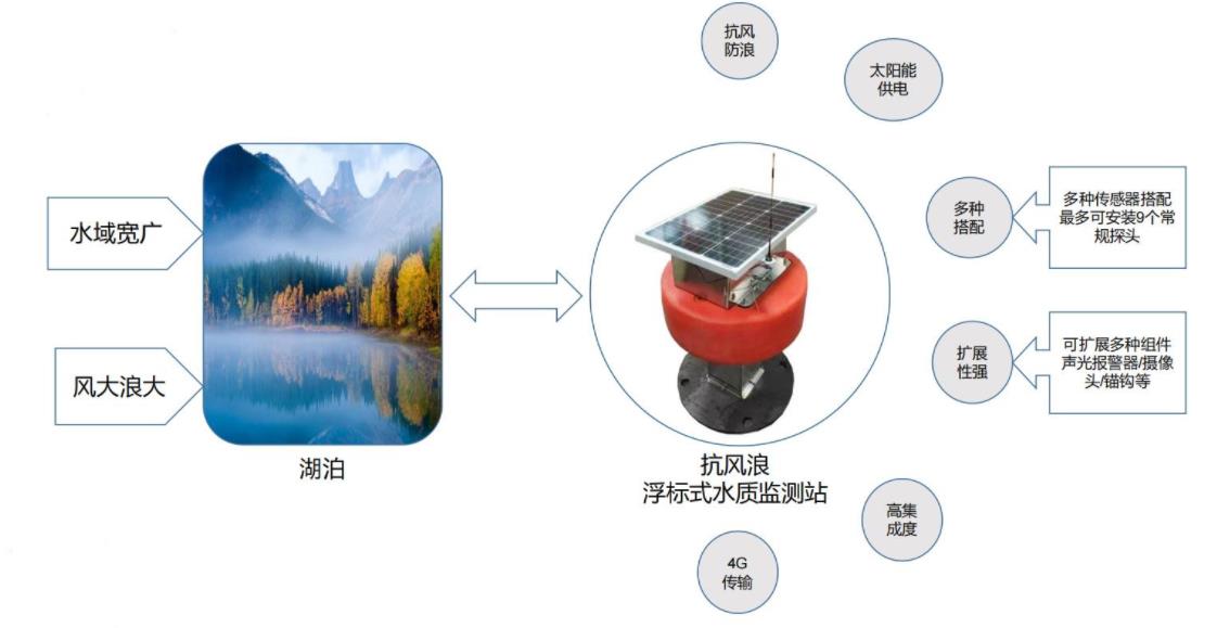 江河、湖泊、水庫(kù)等,是水的主要源頭,也是污染物的主要入口,水質(zhì)監(jiān)測(cè)尤為重要。但此類(lèi)場(chǎng)景復(fù)雜多變,水質(zhì)狀況難以把控,污染程度存在區(qū)域性變化,且系統(tǒng)安裝環(huán)境更為復(fù)雜惡劣。需要多種類(lèi)型的系統(tǒng)根據(jù)環(huán)境情況進(jìn)行布點(diǎn)搭建。